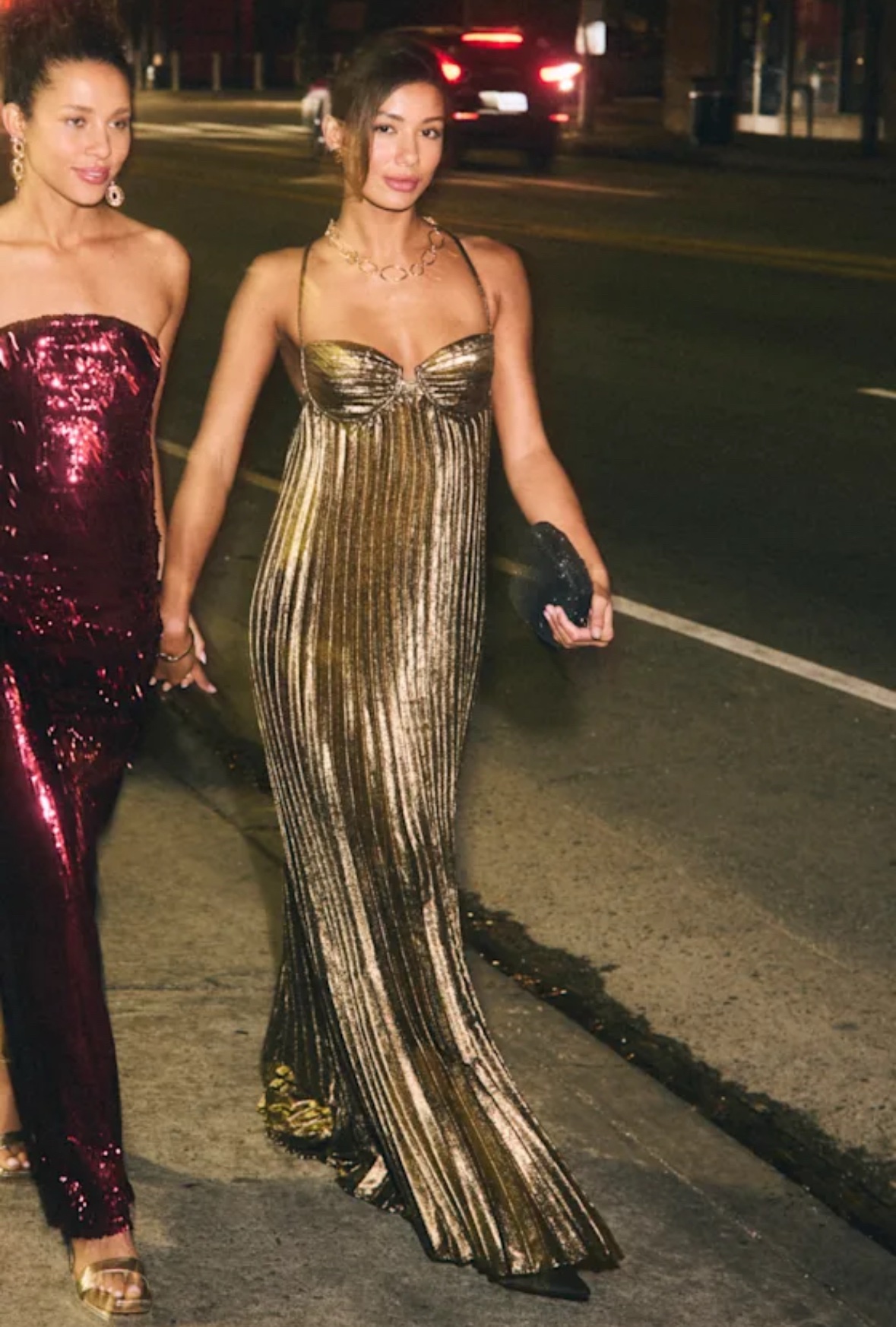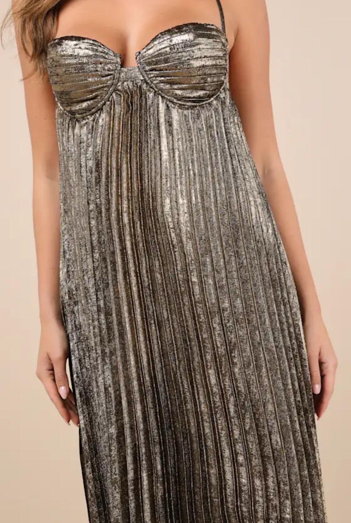 Allure Gold Metallic Pleated Maxi – €70 per week